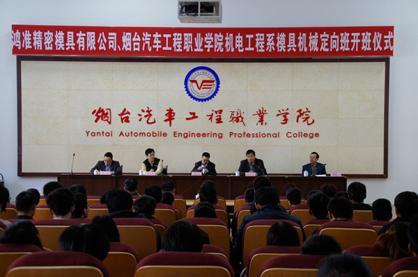 3月28日,学院与富士康鸿准精密模具有限公司模具机械加工人才定向培养“鸿准模具定向班”开班暨签约仪式在第五会议室举行。富士康鸿准精密模具有限公司副理何德明,副院长姜义昌出席了开班仪式,招生就业处处长王强、机电工程系主任李世一与机电工程系相关负责人及定向班师生参加了开班仪式。