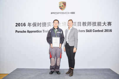 4.2016年12月,尹永福老师在南京获得保时捷实习生项目机电教师技能大赛一等奖,焦爽老师获得保时捷实习生项目非技术教师技能大赛二等奖。