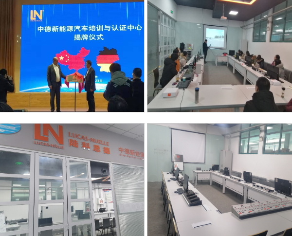 中德新能源汽车培训与认证中心是烟台汽车工程职业学院与德国陆科思德教育集团共建实训基地,该实训基地投资500万元,主要包含电池、电机、电工电子技术、电池及管理系统、整车控制系统、整车结构与原理等相关项目的培训内容,涵盖了从基本的用电安全到整车控制的所有相关课程体系及实操项目,满足新能源汽车技术、新能源汽车运用与维修、汽车电子技术等相关专业的培训需求,同时也满足对学生、对社会相关人员的培训与认证要求。