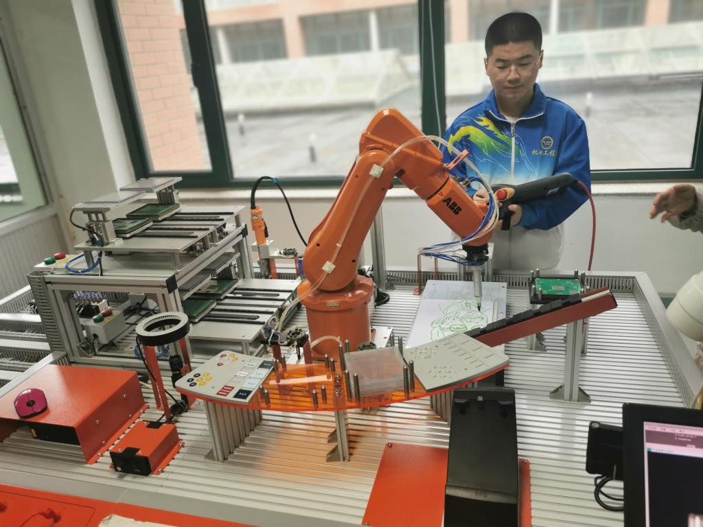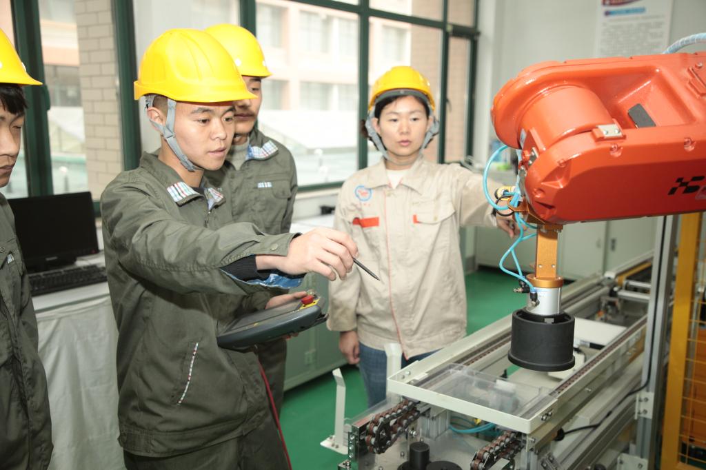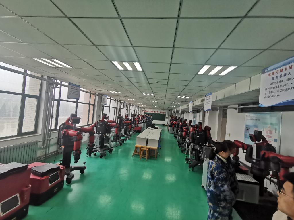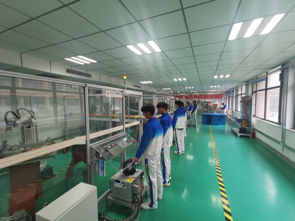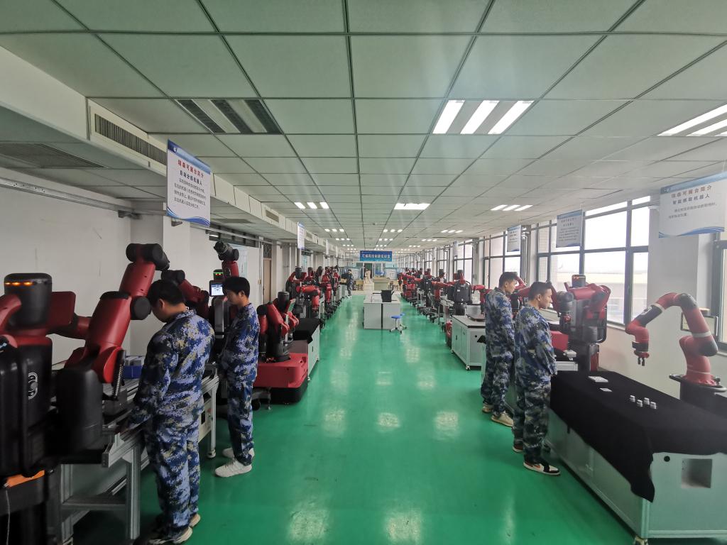 拥有50台瑞森可协作机器人,其中有3台工业机器人流水线教学工作站,1台多工艺基础教学实训工作站,1台汇博工业机器人技术大赛设备。机电工程系获批工业机器人应用人才培养中心基地项目,供学生日常实训,理实一体化教学,同时也开展师资培训以及对外培训,并常年承接技能竞赛任务。