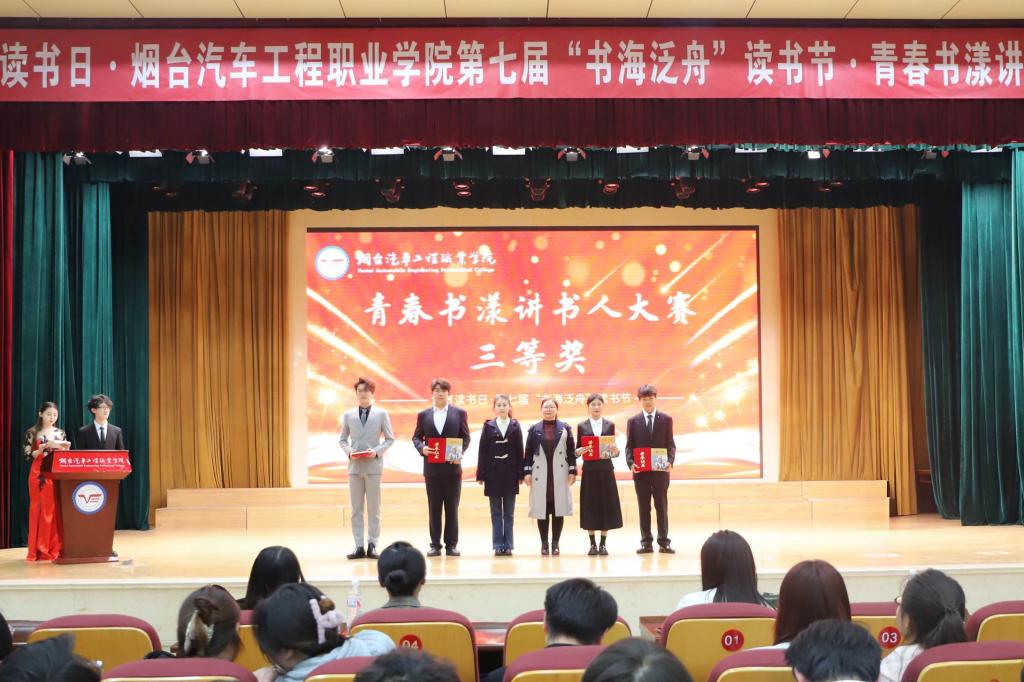 在第30个“世界读书日”来临之际,为深入推进“书香校园”建设,激发青年学子阅读热情,4月18日下午,烟台汽车工程职业学院举办第七届“书海泛舟”读书节系列活动之青春书漾讲书人大赛决赛。学院团委宣传部长孙晓辉、“书海泛舟”读书会创始人韩如坤、帆书(原樊登读书)认证讲师李小云、王茜及师生代表800余人齐聚现场,共赴一场思想与情感的盛宴。
