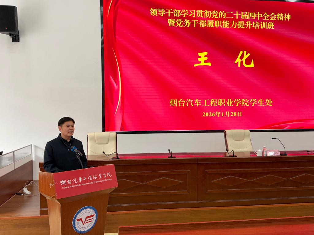 为深入学习贯彻党的二十届四中全会精神,全面提升领导干部政治素养与党务干部履职能力,1月26日至28日,学院在第五会议室举办领导干部学习贯彻党的二十届四中全会精神暨党务干部履职能力提升培训班。学院党委书记秦桂建出席开班式并作专题辅导报告,党委副书记曲耀春出席结业式并作总结讲话,学院各党总支、直属党支部、党支部班子成员和副处级及以上领导干部参加培训。