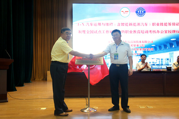 6月5日,1+X汽车运用与维修(含智能新能源汽车)职业技能等级证书制度全国试点工作说明会暨职业教育培训考核办公室授牌仪式在烟台汽车工程职业学院报告厅举行。会上,北京中车行高新技术有限公司董事长曹之明、烟台汽车工程职业学院院长李广共同签订了校企双方《1+Ⅹ证书制度试点学校汽车专业领域办公室建设协议书》,并为汽车专业领域校企合作职业教育培训考核办公室揭牌。