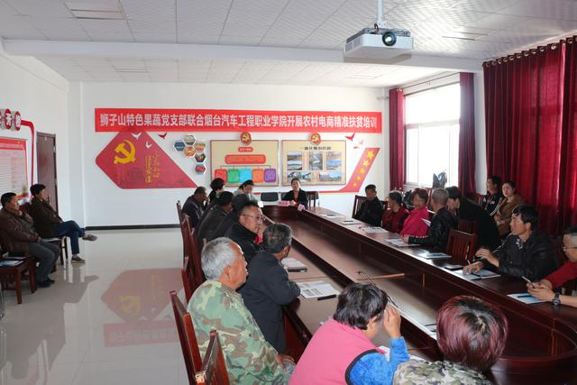 月17日上午,烟台汽车工程职业学院经济管理系联合福山区商务局、回里镇狮子山特色果蔬党支部在回里镇李家疃以“农业新媒体·经济新发展”为主题开展电子商务精准扶贫培训活动。经济管理系电商专业教师苏慧担任主讲,狮子山片区各村特色果蔬种植大户、贫困户以及各村扶贫专员共计30余人参加活动。