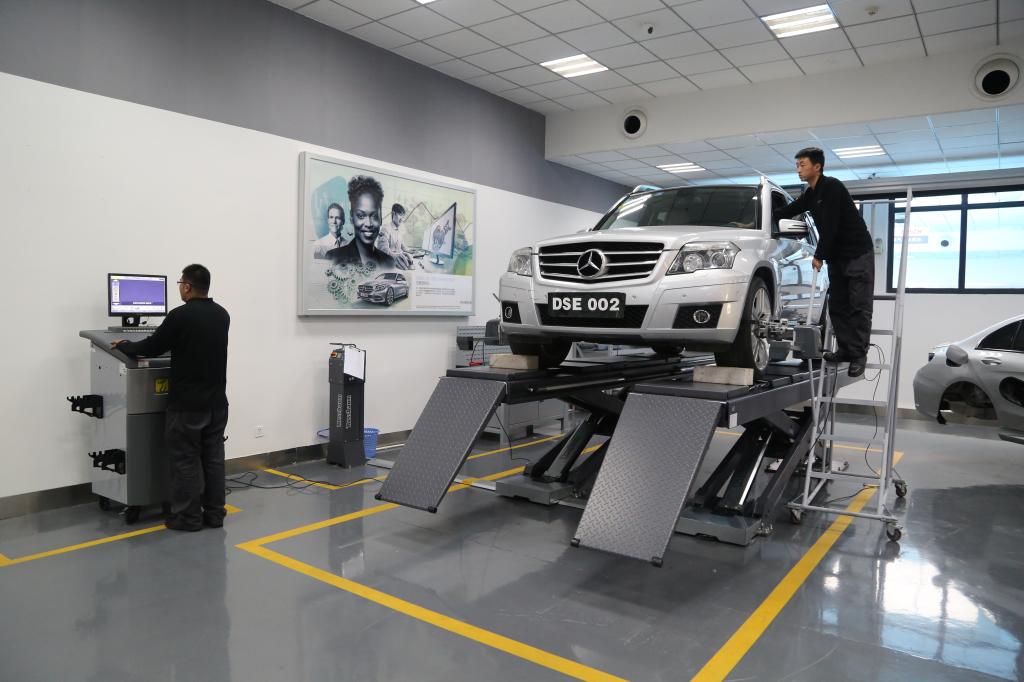 学生在戴姆勒实训室实训操作