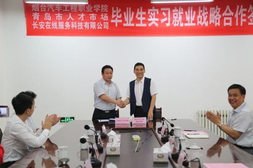 招聘会上,该院有两项校地和校企合作成果落地,签约仪式在第一会议室举行,院长尹桂瓒分别与青岛市人才市场代表和烟台市长安在线服务科技有限公司代表签署了毕业生实习就业战略合作协议。