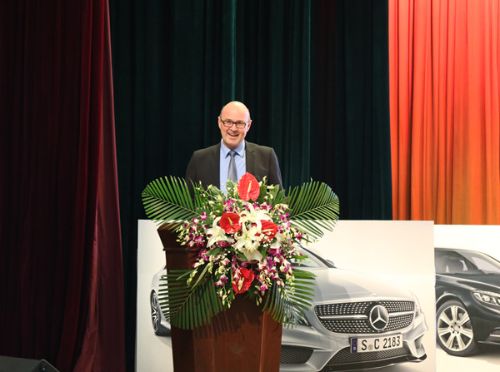 日前,戴姆勒铸星教育项目2016烟台基地落成典礼在烟台汽车工程职业学院报告厅隆重举行,戴姆勒大中华区有限投资有限公司人力资源支持及戴姆勒中国职业教育总监司徒马丁(Martin Spical)先生及烟台市、福山区相关领导及戴姆勒铸星教育项目合作院校的相关领导和教师、山东省内梅赛德斯—奔驰授权经销商代表、汽车职教集团成员单位代表、戴姆勒铸星班学员及学生代表参加了落成典礼,戴姆勒铸星班同时开班,戴姆勒铸星教育团队也在烟台启动了本年度的首场校园宣讲活动。