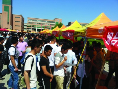 昨日上午9点,记者来到烟台汽车工程职业学院2015年春季校园招聘会现场时,101家用人单位和赶来求职的毕业生们早已将红旗广场挤了个满满当当。“我明年毕业,今年就要顶岗实习,这次来的企业和提供的岗位都不少,我打印了20份简历,现在已经投出去一半了。”虽然做了万全的准备,汽车检测与维修技术专业的小林还是对招聘会上的火爆程度感到意外。