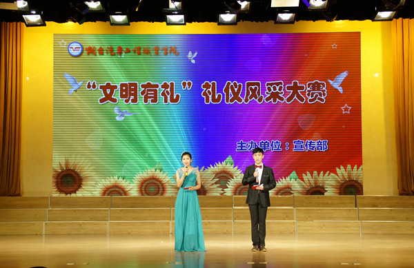 为弘扬中国传统礼仪文化,推广现代文明礼仪规范,扎实开展文明礼仪教育及实践,有效引导广大同学用礼仪规范言行举止,积极践行文明行为,提升全院学生整体文明素质,促进学院精神文明建设,经过精心筹备,日前,由烟台汽车工程职业学院宣传部主办,2014“文明有礼”礼仪风采大赛在学院报告厅举行,由初赛脱颖而出的7支参赛队伍挺进了决赛,学院各系精神文明委员会成员和特邀评委现场观看了比赛。