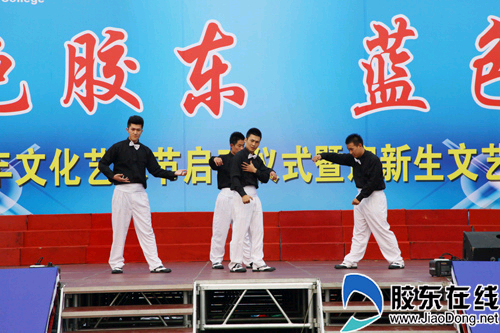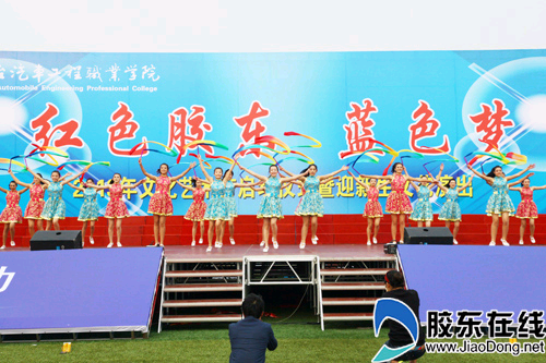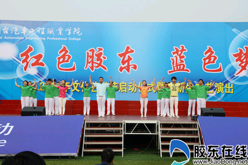 胶东在线网10月25日讯(通讯员刘宗俊))日前,烟台汽车工程职业学院2013年文化艺术节启动仪式在学院东体育场举行。本届文化艺术节的主题为“红色胶东蓝色梦”。