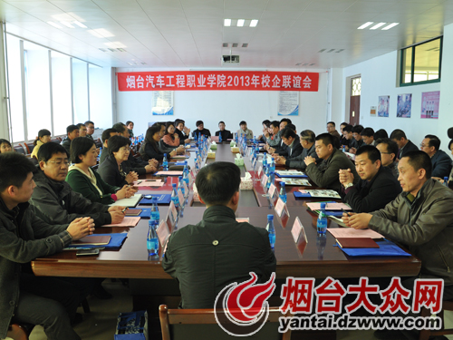 大众网烟台3月28日讯(通讯员赵桂平记者朱军)3月27日下午,2013年烟台汽车工程职业学院校企联谊会举行。联谊会以“校企联谊,携手共行”为主题,围绕如何培养技术过硬、素质过高的人才,学校企业认真交流,畅所欲言。上海通用汽车有限公司、富士康科技集团烟台工业园、鸿富泰精密电子(烟台)有限公司、烟台万华聚氨酯有限公司等三十家知名企业代表参加了联谊会,烟台汽车工程职业学院院长尹桂瓒,党委副书记于波,副院长房培玉、孙涛、姜义昌出席了联谊会。