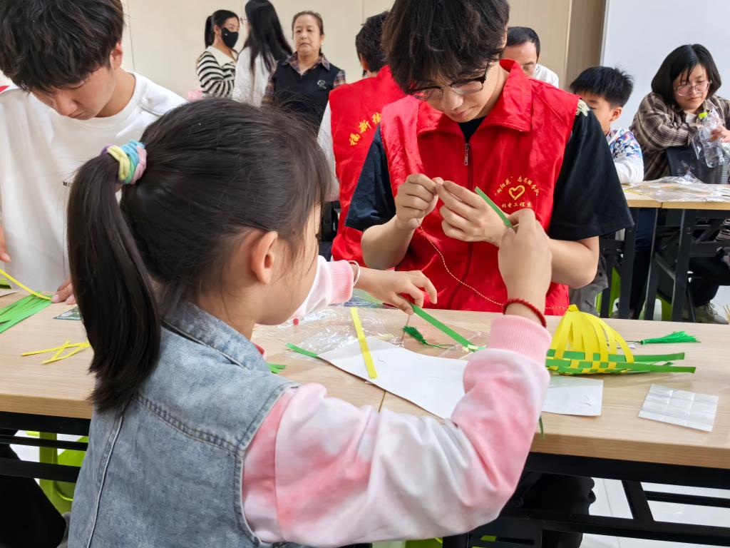 粽香传情承非遗,青春志愿暖端阳。为弘扬中华优秀传统文化,推动非物质文化遗产的传承与发展,同时响应国家“全民健身”的号召,烟台汽车工程职业学院“书海拾贝”传艺启梦服务队学生志愿者于端午节前夕走进福海路社区,以“非遗传承+志愿服务”为主线,开展了一场别开生面的端午主题活动。通过“讲端午”“做龙舟”“传非遗”三大环节,为社区儿童与老人送去节日的温暖,让非遗文化在青春实践中焕发新活力。