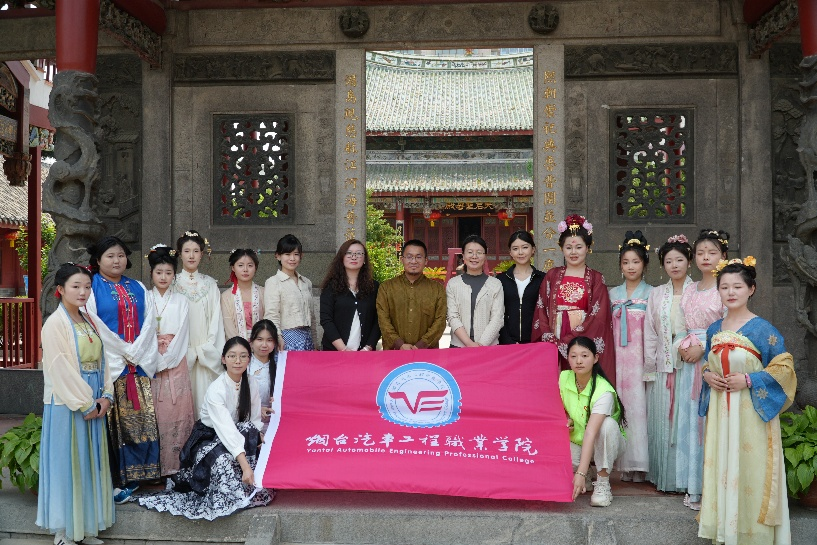 端午将至,烟台市博物馆天后行宫古韵流芳。5月29日,由烟台市博物馆福建会馆管理部主办,烟台汽车工程职业学院经济管理系协办的“天后行宫端午节汉服游园会”圆满落幕。活动以沉浸式文化体验为载体,生动展现了学院在非遗传承与志愿服务领域的育人成果,为传统佳节注入青春活力。