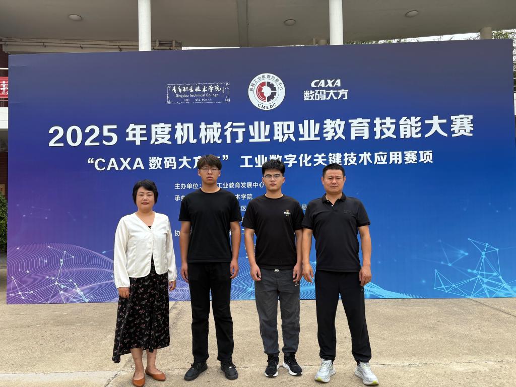 2025年度机械行业职业教育技能大赛“CAXA数码大方杯”工业数字化关键技术应用赛项于6月25日至28日在青岛职业技术学院圆满举办。我院机电工程系数控技术专业辛本一铭、吴洪杰两名学生,在韩秋燕、刁丽海两位教师的带队指导下,凭借扎实的专业技能与出色的综合素养,从全国50余支参赛队伍中脱颖而出,最终斩获大赛二等奖。
