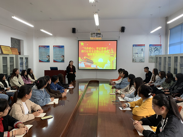 10月11日下午,经管系党总支书记马晓艳以“不忘初心、牢记使命,践行社会主义核心价值观,凝聚青春正能量”为题,为2019级学生上了一堂极具教育意义的思政课。
