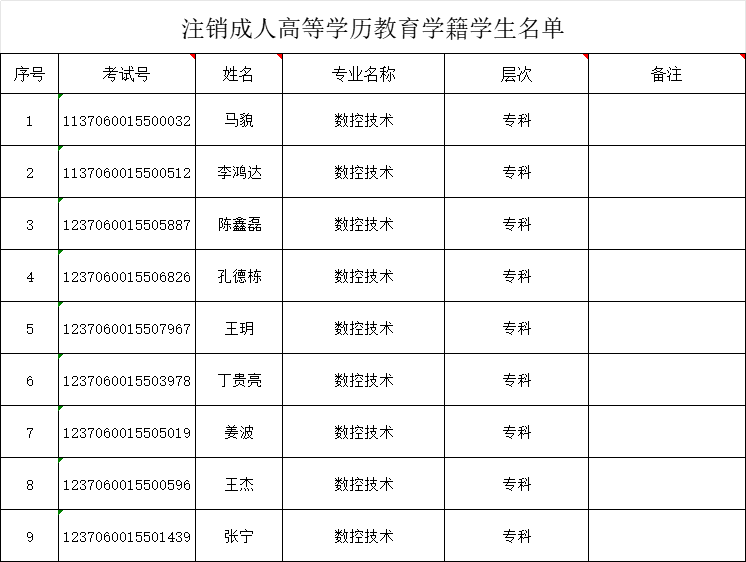 根据《教育部关于推进新时代普通高等学校学历继续教育改革的实施意见》(教职成〔2022〕2 号)等文件精神及《烟台汽车工程职业学院成人高等学历教育学籍管理规定》,经学院研究决定,拟对马貌等9名学生(具体名单见附件)在学信网学籍学历管理平台进行“注销学籍”处理,特此公示。
